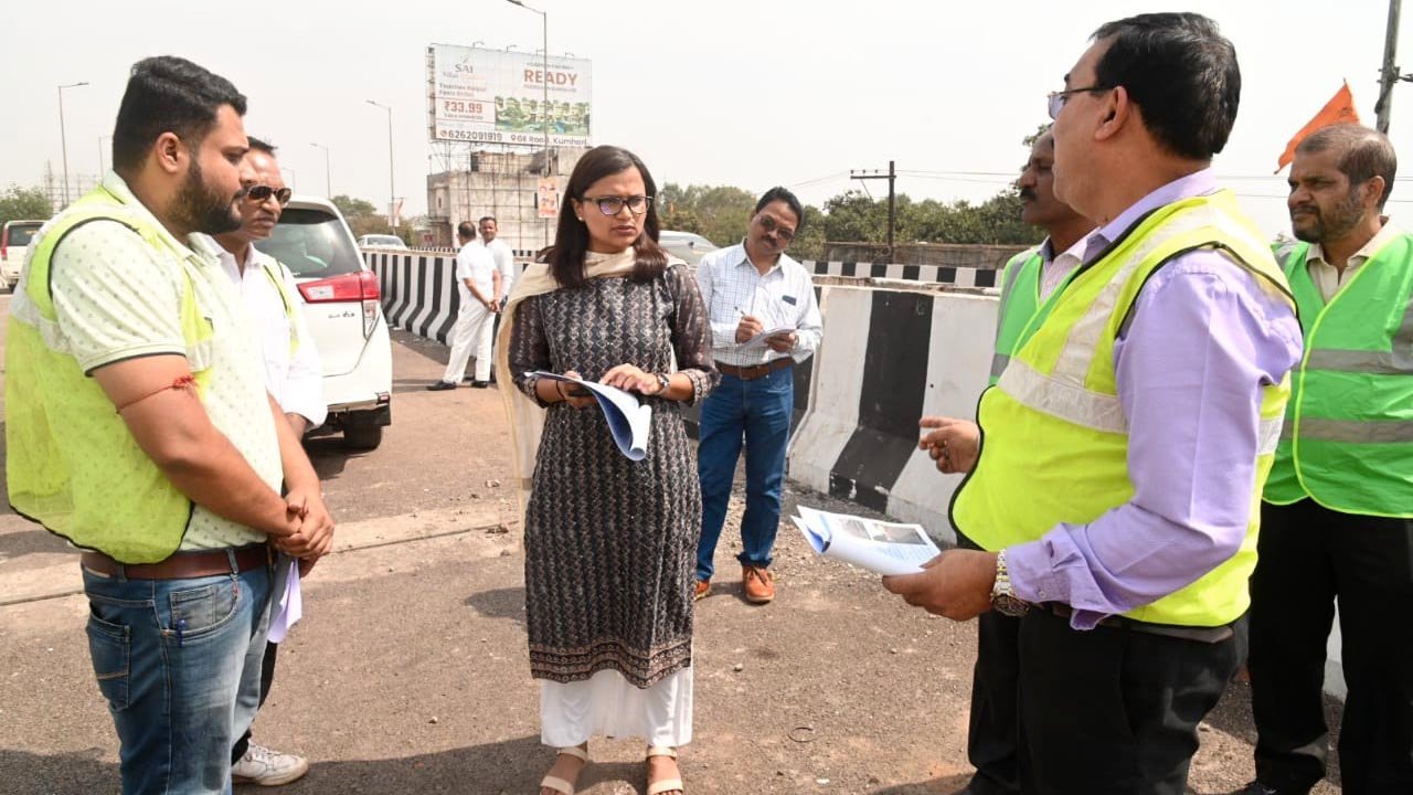 दुर्ग-रायपुर राष्ट्रीय राजमार्ग में निर्माणाधीन फ्लाईओवर का कलेक्टर ने किया निरीक्षण