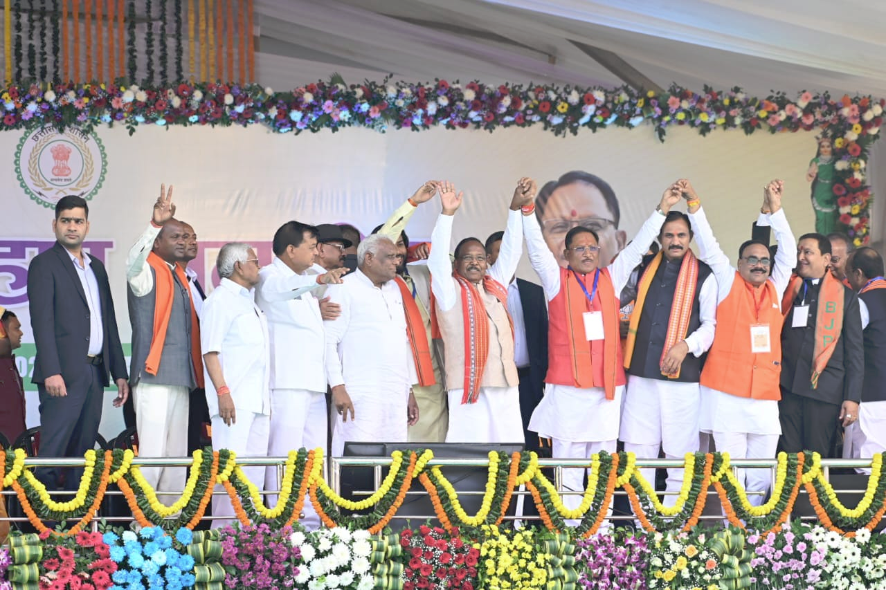 शपथ ग्रहण समारोह के लिए पीएम नरेंद्र मोदी एयरपोर्ट से राजधानी रायपुर पहुंचने ही वाले हैं। इस समारोह में शामिल होने के लिए भाजपा अध्यक्ष जेपी नड्डा, गृह मंत्री अमित शाह और कई राज्यों के मुख्यमंत्री समेत बीजेपी के दिग्गज नेता रायपुर पहुंच गए हैं। फिलहाल नेताओं का इस समारोह में पहुँचने का सिलसिला जारी है।