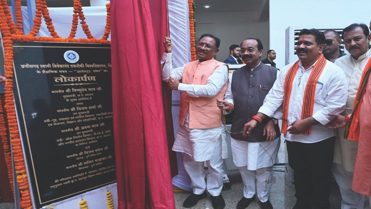 मुख्यमंत्री श्री विष्णुदेव साय ने आज छत्तीसगढ़ स्वामी विवेकांनद तकनीकी विश्वविद्यालय परिसर भिलाई में 10 करोड़ 35 लाख 92 हजार रूपए की लागत से बने नवनिर्मित शैक्षणिक भवन ‘आर्यभट्ट का लोकार्पण किया। उन्होंने विश्वविद्यालय के प्राध्यापकों, अधिकारी-कर्मचारियों, छात्र-छात्राओं को नवीन भवन के लिए बधाई दी। गौरतलब है कि नवनिर्मित आर्यभट्ट भवन में विश्वविद्यालय शिक्षण विभाग के अंतर्गत डिप्लोमा, बी-टेक (ऑनर्स ), एम-टेक एवं पी. एच. डी. की कक्षाएं संचालित होंगी एवं इन विद्यार्थियों के ट्रेनिंग एंड प्लेसमेंट हेतु अंतर्राष्ट्रीय कंपनी न्यूक्लियस टेक के कार्यालय का भी यहां संचालन होगा। अधिकारियों ने बताया कि सीएसवीटीयू फाउंडेशन फॉर रूरल टेक्नोलॉजी एंड एंटरप्रेन्योरशिप (सीएसवीटीयू-फोर्टे) का संचालन भी आर्यभट्ट भवन में होगा। इसके तहत नवीन युवा उद्यमियों को इन्क्यूबेशन सेंटर एवं वित्तीय सहायता दी जाएगी, जिससे वे अपना स्टार्ट-अप को इम्प्लीमेंट कर सकेंगे।